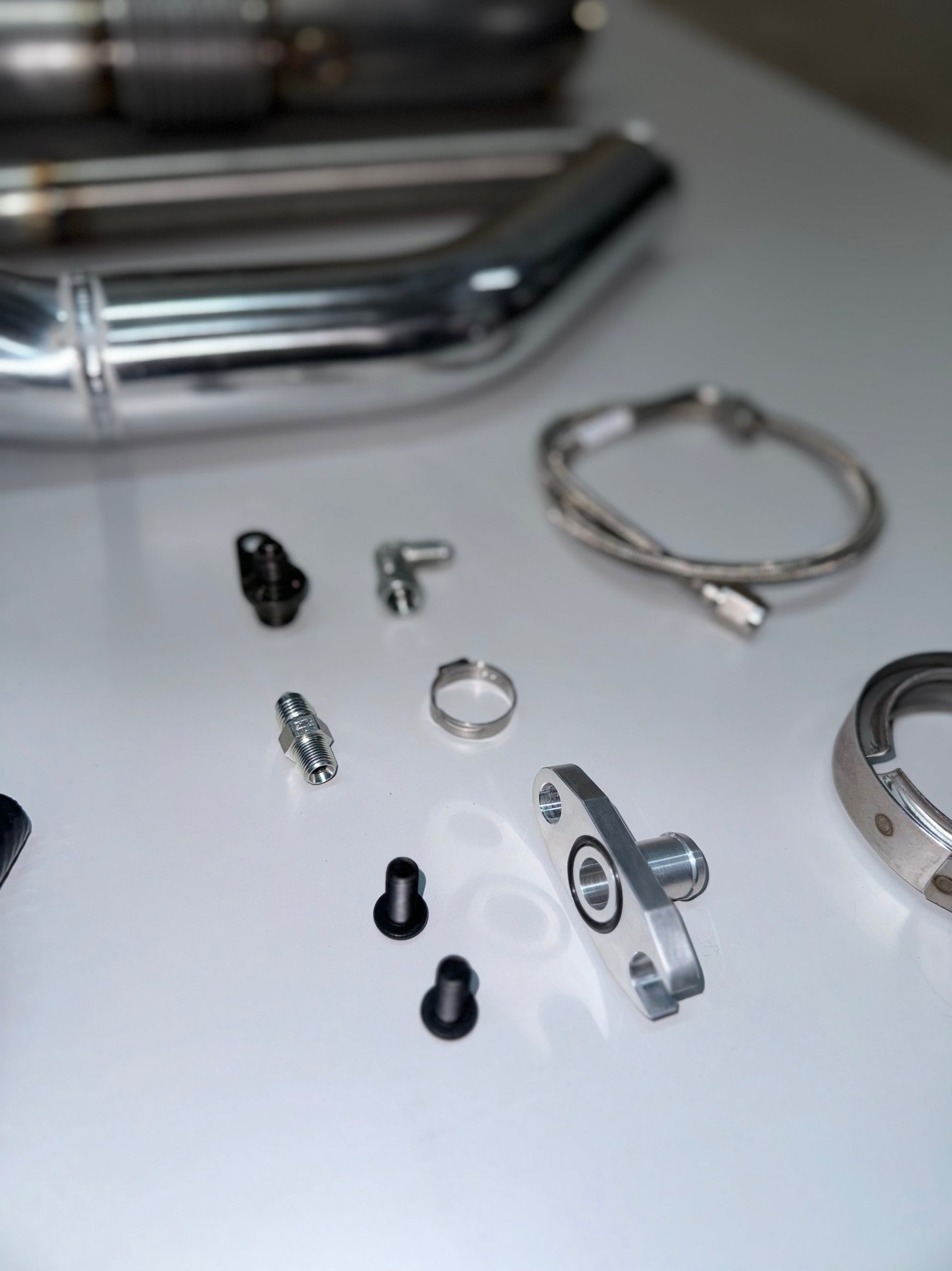 We have redesigned our 2 port turbo kit for the A90 2020 Supra! This time featuring a larger turbo, using external gate only for simplicity and ease of installation! Boost Source location changed and a bigger wastegate with a 1.75" outlet pipe. This brings the kit to a whole other level of power and quality! Mandrel Bent Piping, Back Purged welds and higher quality coolant lines.